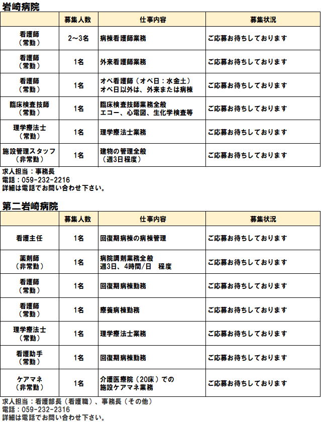 電話でのご予約・お問い合わせは 第二岩崎病院 TEL.059−232−2316 通所リハビリテーション TEL.059−236−5277